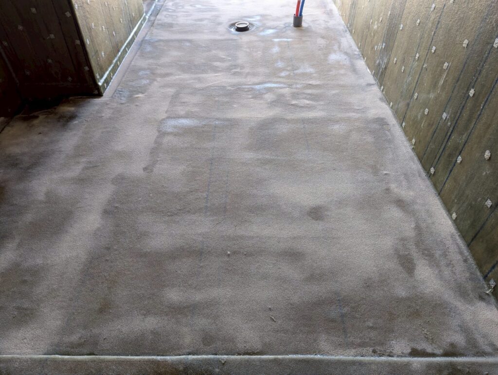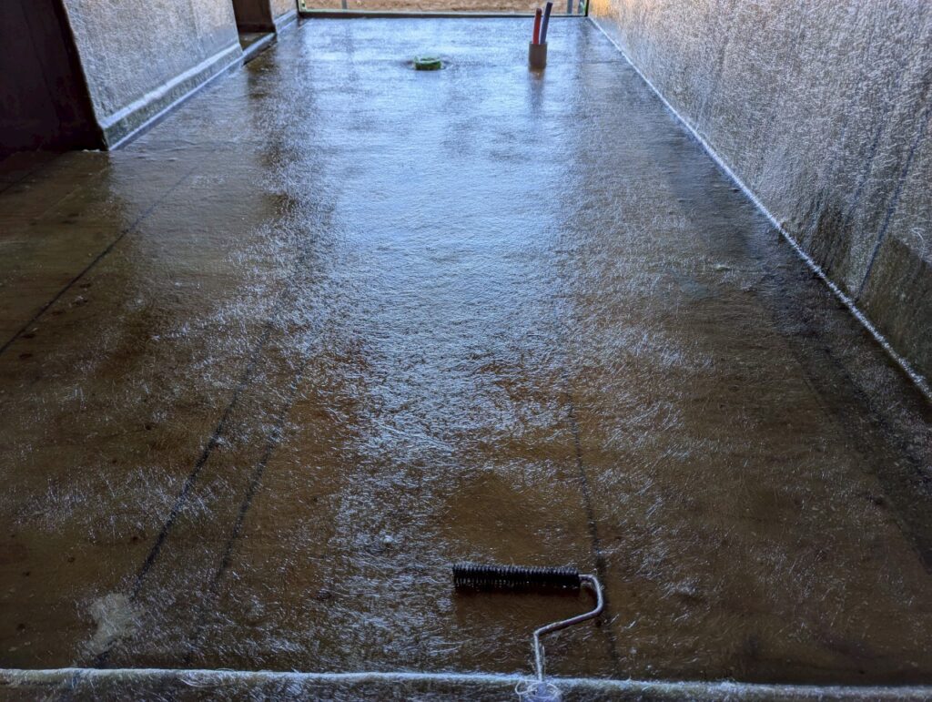涙をぬぐったら完成です。最終的にコンクリートで覆われてしまう為、屋上防水のようにトップコートを塗って綺麗に仕上げる必要が無いので、これで完成?と思われてしまうかもしれませんが、しっかりと防水が出来ております(^^♪