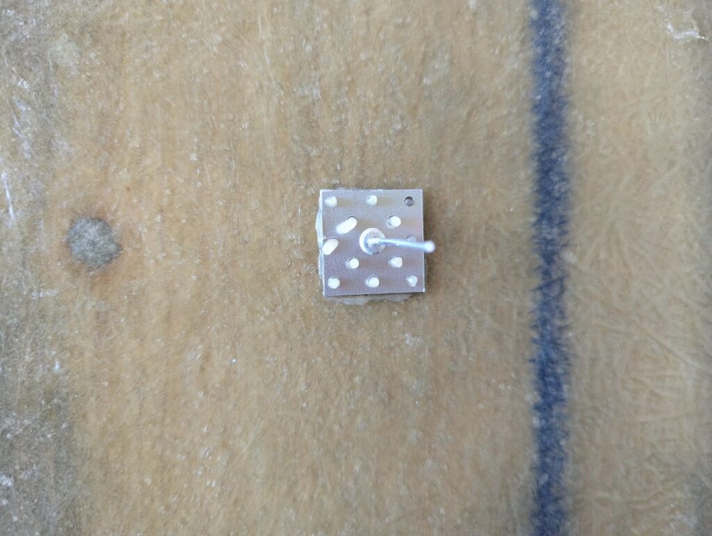 FRP防水が完了した上からコンクリートを打設します。コンクリート打設前にコンクリートの付着を良くする為にネットを張ります。そのネットを固定する為のトンボと呼ばれるピンをシーリング材で固定している状況です。