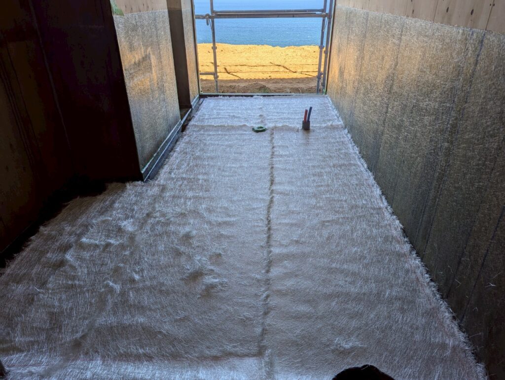 オーシャンビューをガン見して泣きながらガラスマット2層目を敷き込んでいきます。