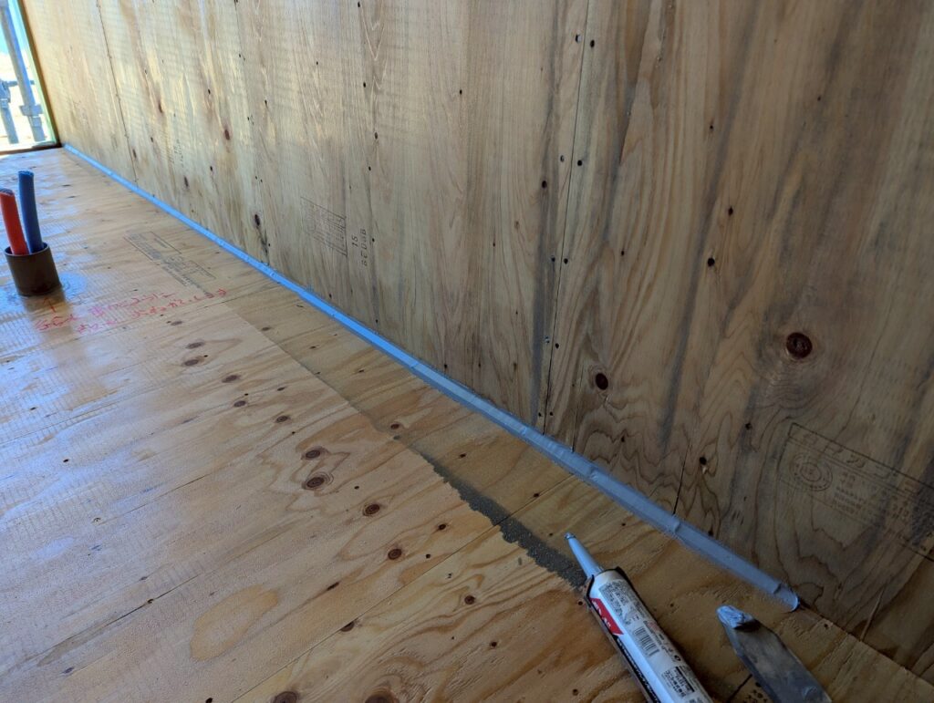 入隅の角部分もガラスマットの納まりを良くするようにシーリングで面を作ります。
