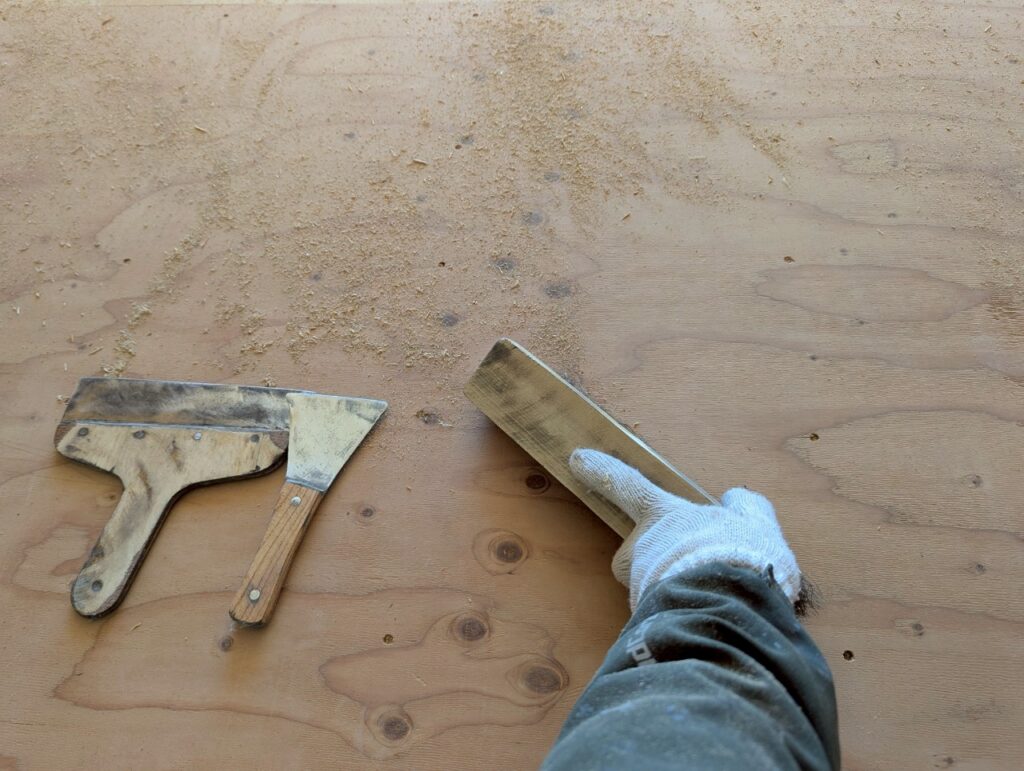 床部分も同様にコンクリートの付着を良くする為に珪砂という細かい砂を撒いていきます。