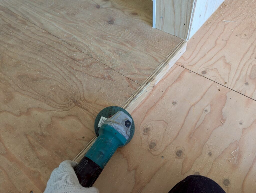 出隅部等はFRP防水で使用するガラスマットの納まりを良くする為、45°に角を落としていきます。